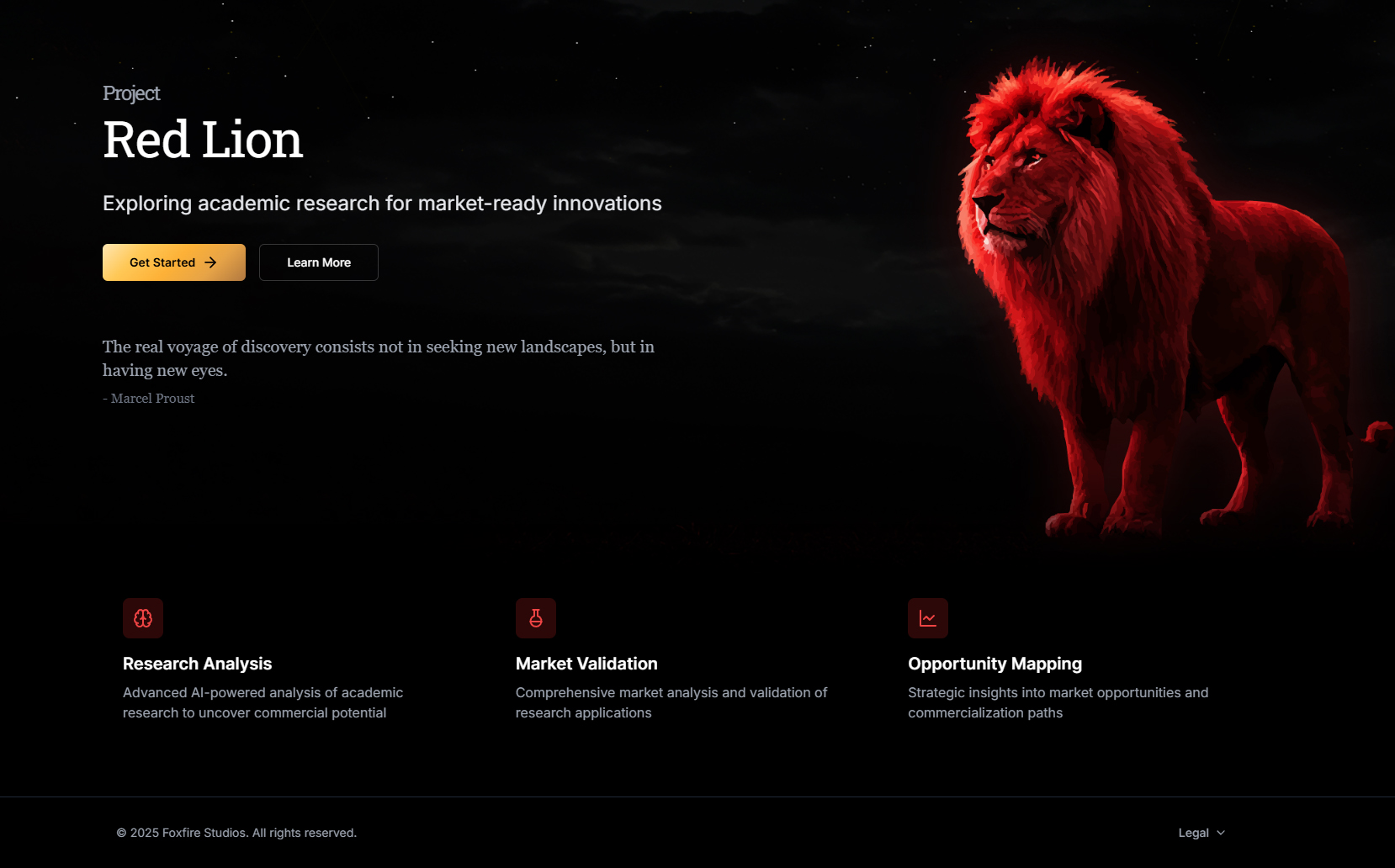 Red Lion transforms academic research into structured, investor-ready insight. Using Retrieval-Augmented Generation (RAG), startup-readiness scoring, and dynamic commercialization reports, it empowers universities and researchers to unlock the business potential of their work.